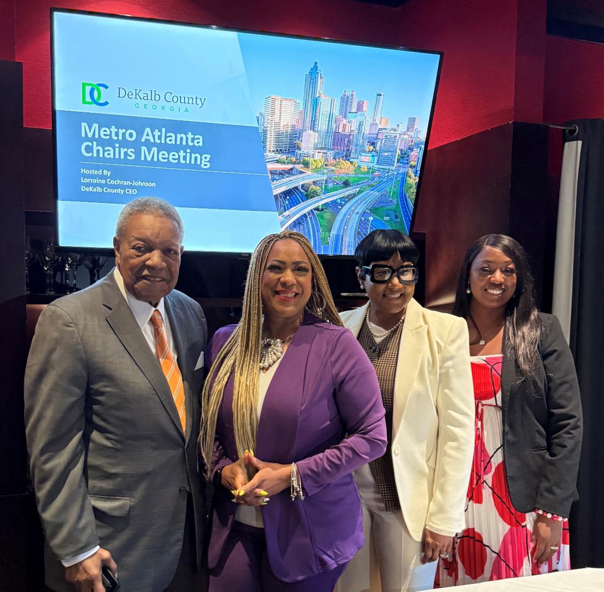 | | Pictured from left to right: Fulton County Chairman Robb Pitts, Clayton County Chairwoman Dr. Alieka Anderson-Henry, DeKalb County CEO Lorraine Cochran-Johnson, and Gwinnett County Chairwoman Nicole Love Hendrickson | | |