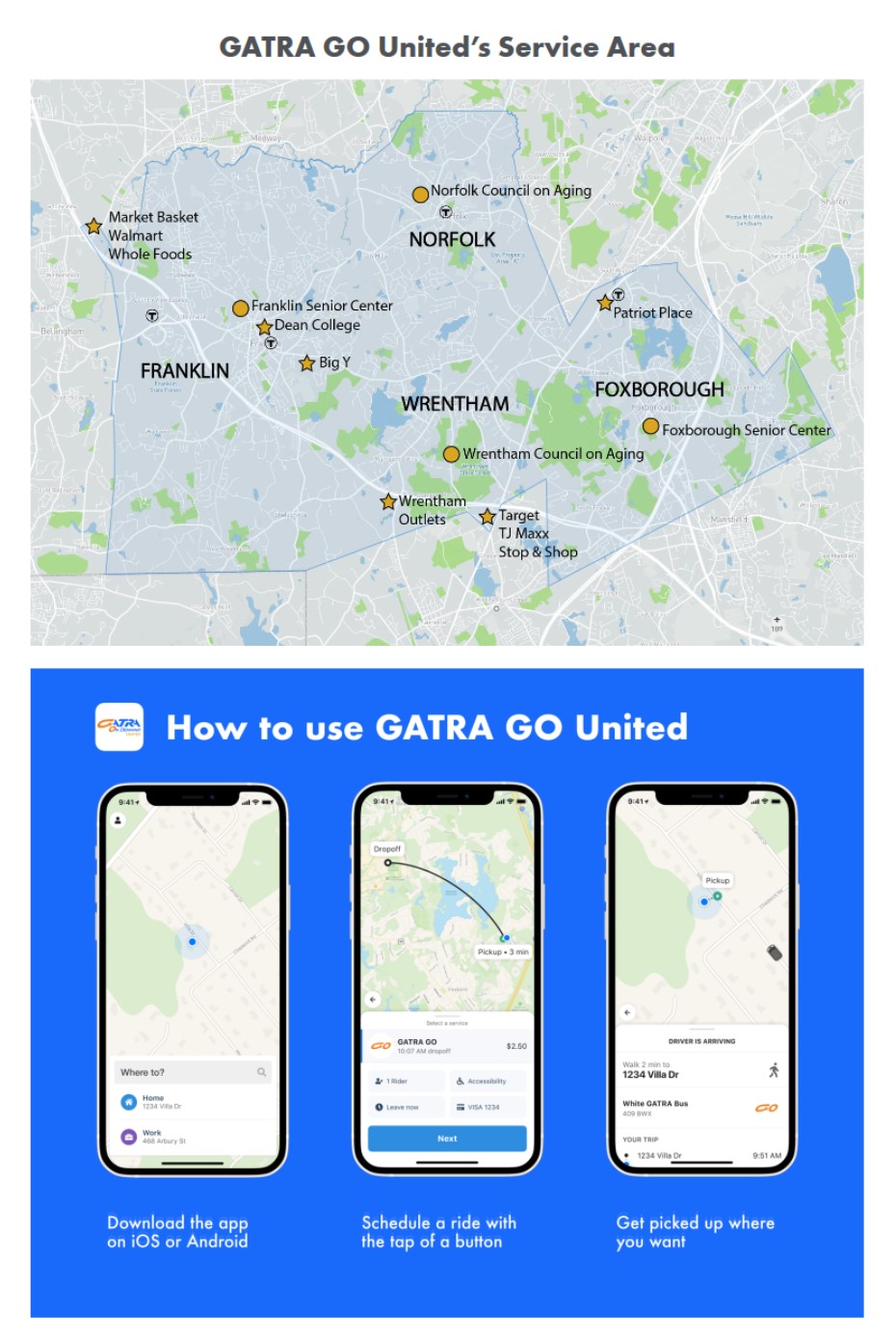 Students can download the Gatra Go United app for a free rideshare service available to them Monday through Friday 6:30am-8pm, Saturday 9am-8pm and Sunday 9am- 6pm. We will provide directions on the student portal (myDean) as there is a special Dean College code for our community.