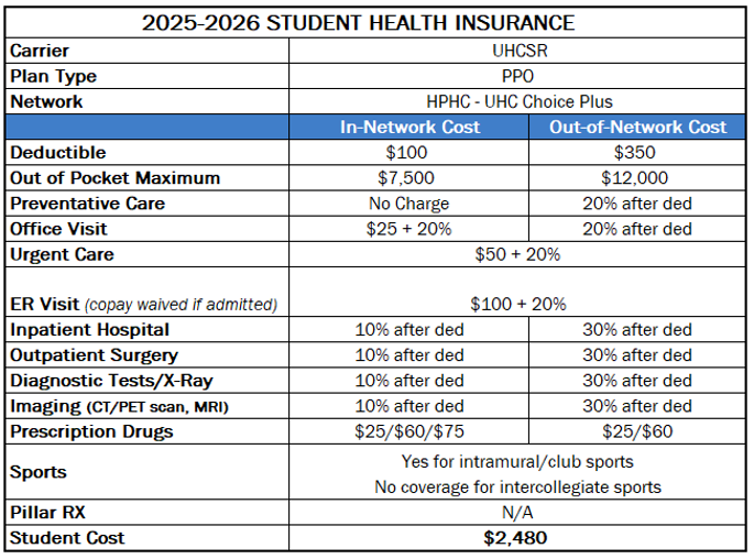 We strongly encourage all students to carefully review the updated benefits information outlined below to fully understand how these changes may impact your coverage and out-of-pocket costs.