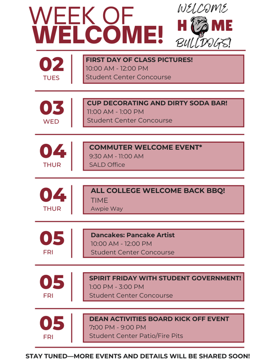 With the calendar flipping to August, we are just a few weeks away from check-in/move-in for the 2025/2026 academic year! Whether you're finalizing your packing list or still checking off a few last-minute items, we’re already hard at work preparing for your arrival. And to our newest Bulldogs and their families—welcome to Bulldog Nation!!