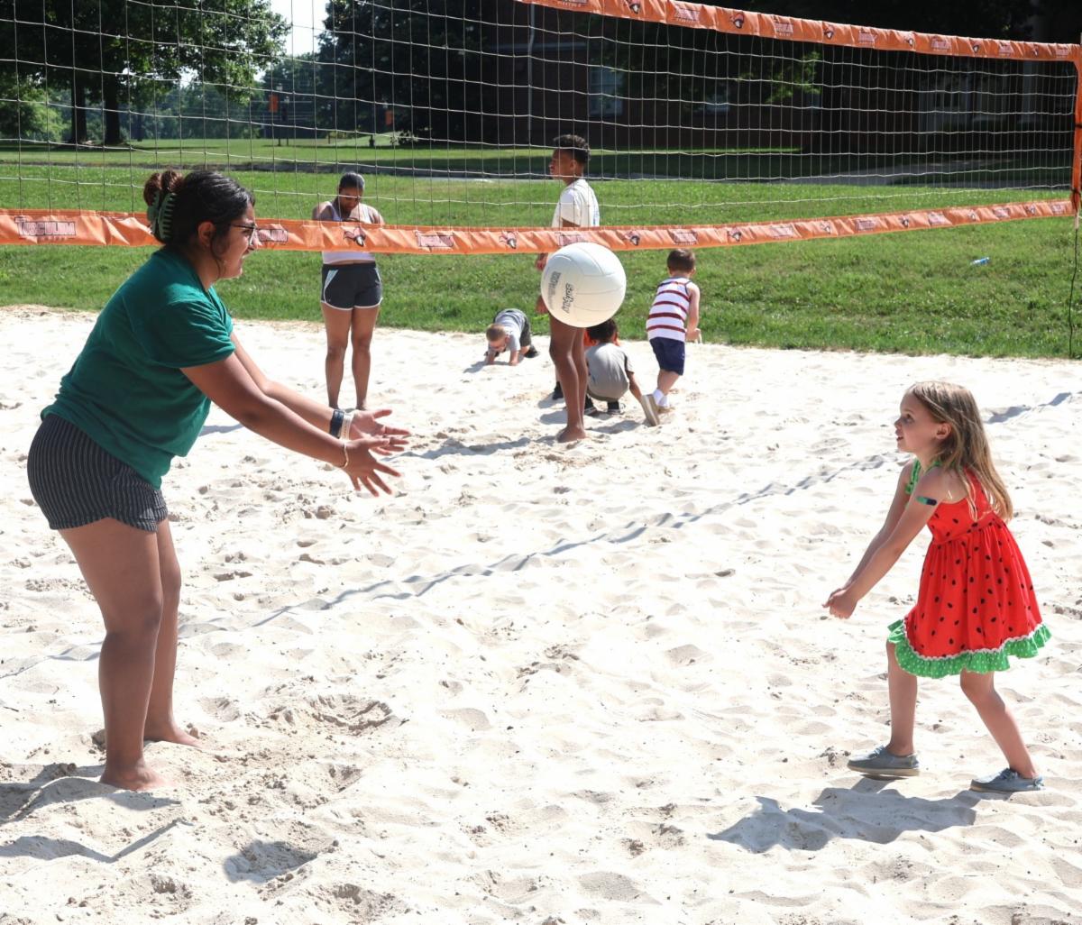 Rising students for kindergarten through second grade visited campus one day, followed two days later by those rising to third grade through fifth grade. The students attended the same classes as high school students from the Upward Bound Math and Science program. The older students also taught the younger ones some of the skills needed to play volleyball.