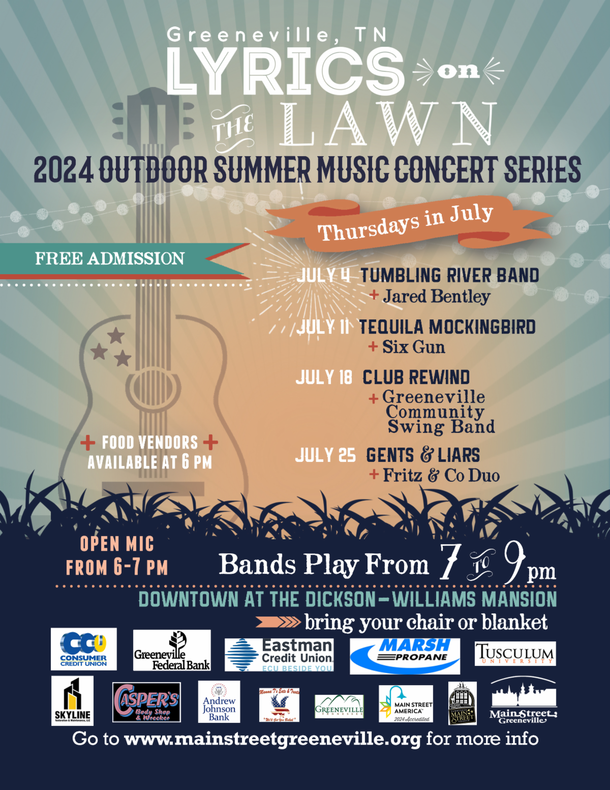 For all my local peeps, check out the Lyrics on the Lawn each Thursday in July. | |