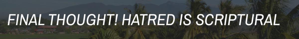 Here’s what God wants and needs today around the world – a body of Christ that loves Him AND hates His enemies. You want to channel hatred? Good, so do I! Let’s channel it towards Satan and all his demons – together. Hatred IS scriptural. Just make sure you’re hating what God hates. Never forget this truth: YOU’LL NEVER LIVE FREE FROM DEMONIC TORMENT AND SIN UNTIL YOU LEARN TO HATE LIKE GOD DOES. Jesus said to learn this from Him (Matthew 11:29). Do that, and you’re on solid ground with the Lord!
