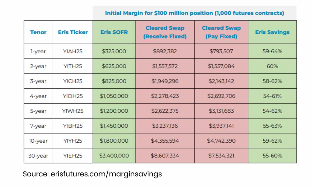 Disclaimer: The information contained herein does not constitute a prospectus, nor is it a recommendation to buy, sell or retain any specific financial instrument or security. The information has been provided to you for informational purposes only and is intended as a broad overview of certain aspects Eris swap futures products, and should not be considered as investment advice, legal advice, or tax advice. Although all effort has been made to provide accurate information Eris Innovations assumes no responsibility for any errors or omissions. Trademarks of Eris Innovations and/or its affiliates include Eris, Eris Innovations, Eris PAI, Eris Methodology, Eris Pricing Engine and the Eris Logo. All other trademarks, service marks, trade names, product names and logos are the property of their respective owners. Certain elements of the contract design and pricing construct are covered by U.S. Patent No. 9,747,641. Other patents-pending. All Rights Reserved. |