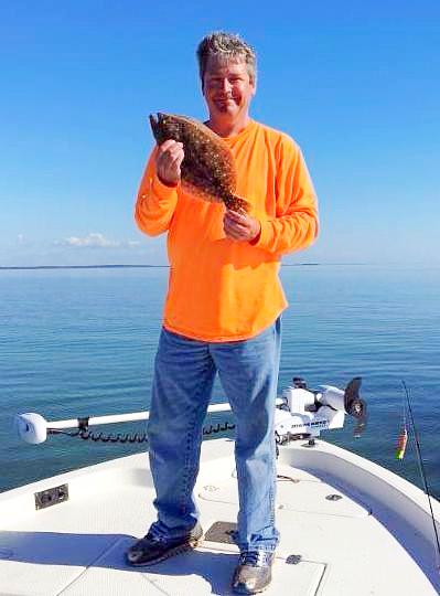 Alex Owens landed this flounder using a Berkley Gulp 5" GSJS5-CPN Jerk Bait and a 1/4oz jighead.