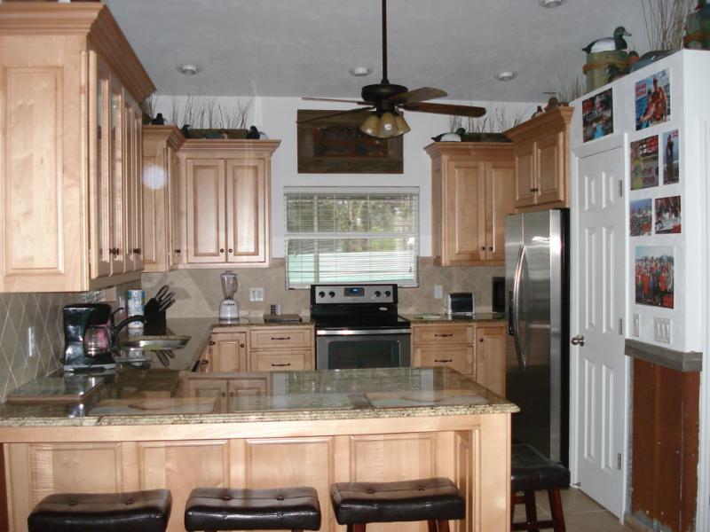 ABOVE Our largest unit the, Scallywag Shack, is 6 Bedrooms and 3 1/2 baths. Granite counter tops, ceramic tile flooring, 4 bedrooms 2 bath downstairs with outside hot water shower, 1/2 bath in the laundry. Upstairs has 2 bedrooms and 1 bathroom, full kitchen and living area and a large covered and screened deck. Sleeps maximum of 15. Great for groups, meetings or events!