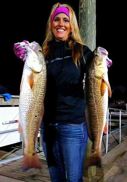Claudia Sauls knows how to catch a redfish or two. I'm pretty sure she brings Steve along just to drive the boat!