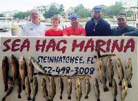Glen Gulledge's group from Headland, AL, caught redfish, pompano, trout, and flounder on a charter trip out of Sea Hag Marina.