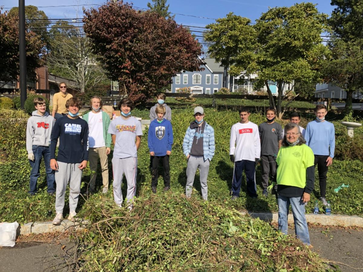 New Canaan's SLOBs, Student League of Boys, helped out the NC Beautification group three times this fall. The events were coordinated by Robbie Hellmann, he collected the details of each project and then organized sign ups from the group.