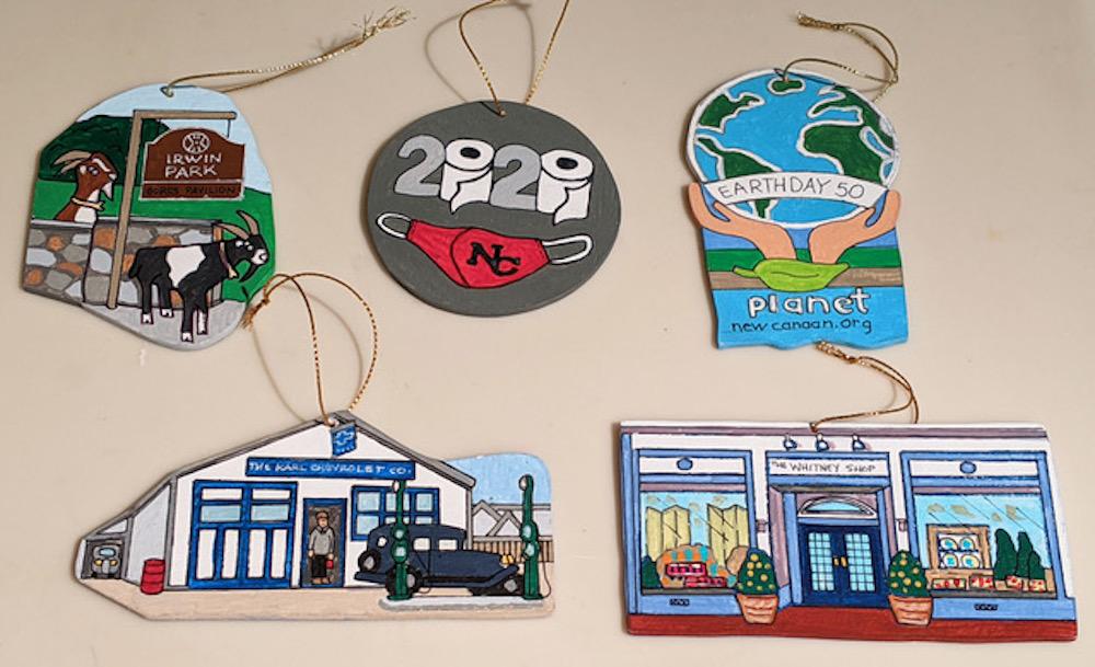 Hand painted New Canaan ornaments, including the NCBL hanging basket ornament, will be available for sale at the following places and times: