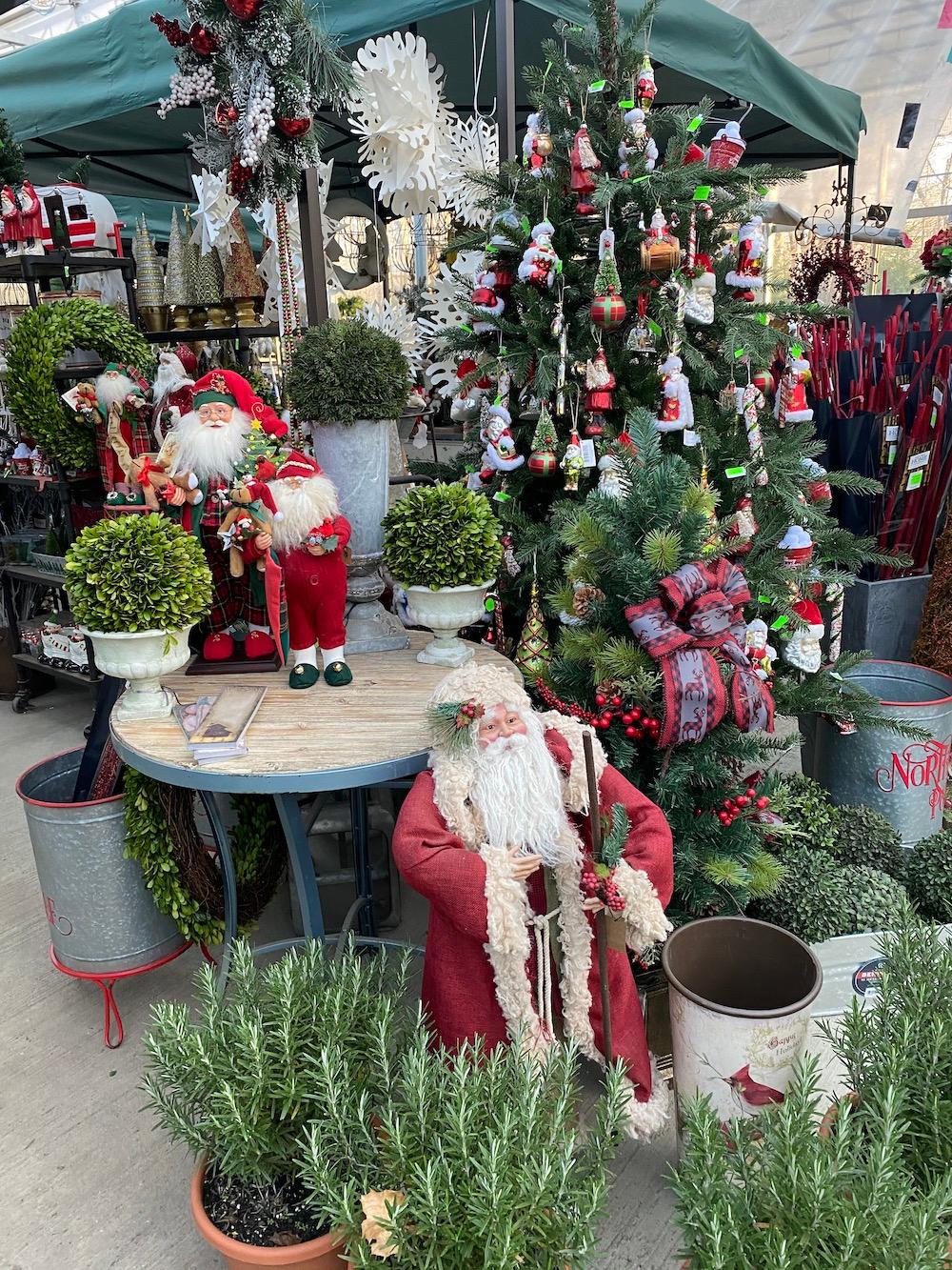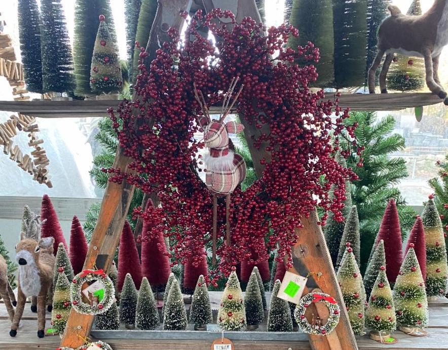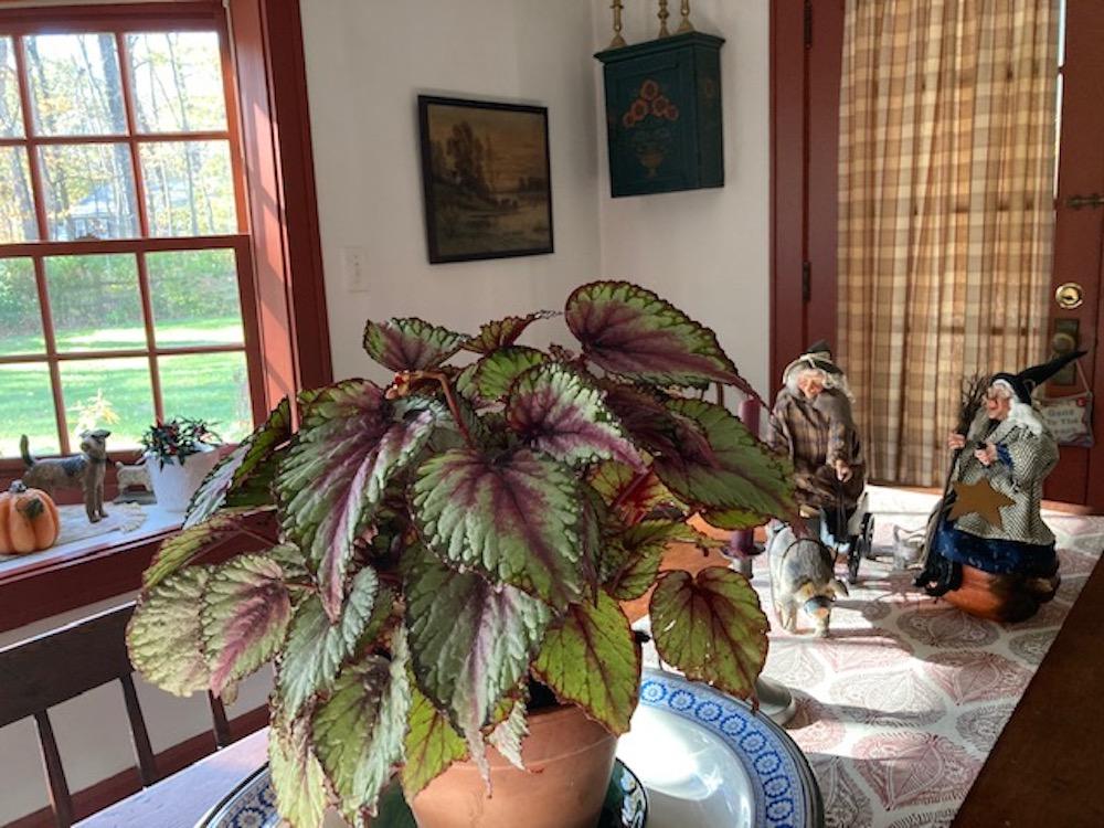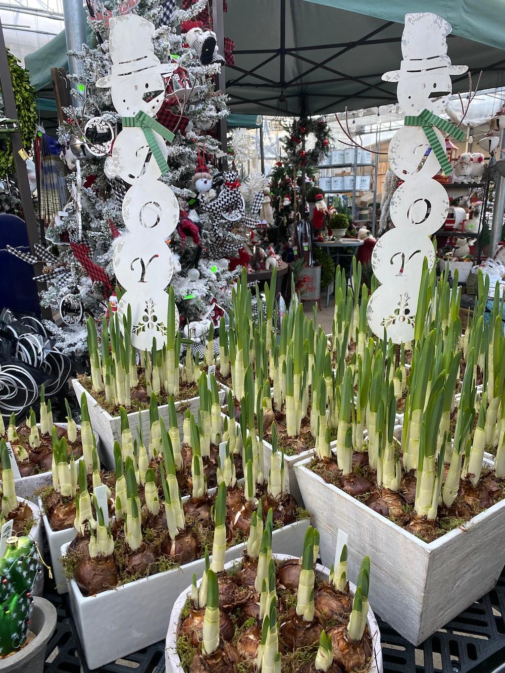 Above: Anka Jones is over-wintering one of Carol Seldin's begonias. Right: Christmas display at Copia.