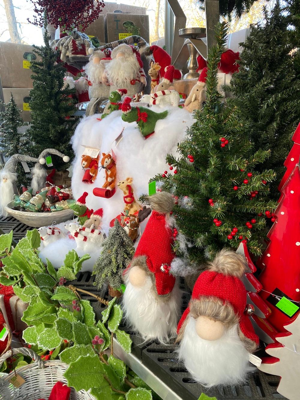 ‘Tis the season to unwrap the creative elf inside yourself! We can always find ways to be merry and bright! A pine tree fell over in Karen’s yard a few days ago, and she used branches to make a swag for her lamp post. Bianca happened by, and she cut more branches for her decorating. Laura plans to use some for the Greens Workshop. Faith will lead a group in making gnomes at the workshop. Faith also designs the wonderful hand-painted landmark ornaments.
