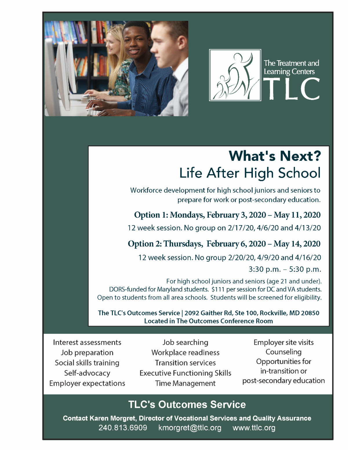 - Contact Karen Morgret, Director of Vocational Services and Quality Assurance 240.813.6909 kmorgret@ttlc.org