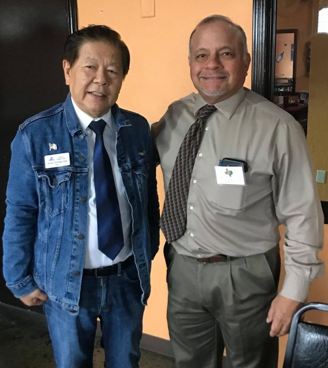 Thanks to Art Camacho, City Secretary of Haltom City and NTMCA Secretary, for planning a fun luncheon at El Tejas restaurant. Our scheduled speaker wasn't able to attend, so Mayor An Truong welcomed the group and spoke about his background. He was a Vietnamese fighter pilot and flew alongside American pilots in the Vietnam War. He's been an American citizen for more than 40 years now. He became a Fort Worth Police officer in the 1980s, and an investigator for the Tarrant County District Attorney's Office. After that, Truong earned his Ph.D. and went from Haltom City council member to mayor.