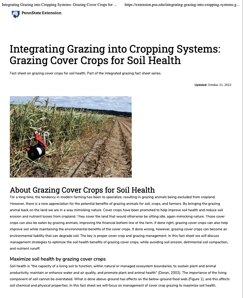 Fact sheet on grazing cover crops for soil health. Part of the integrated grazing fact sheet series.