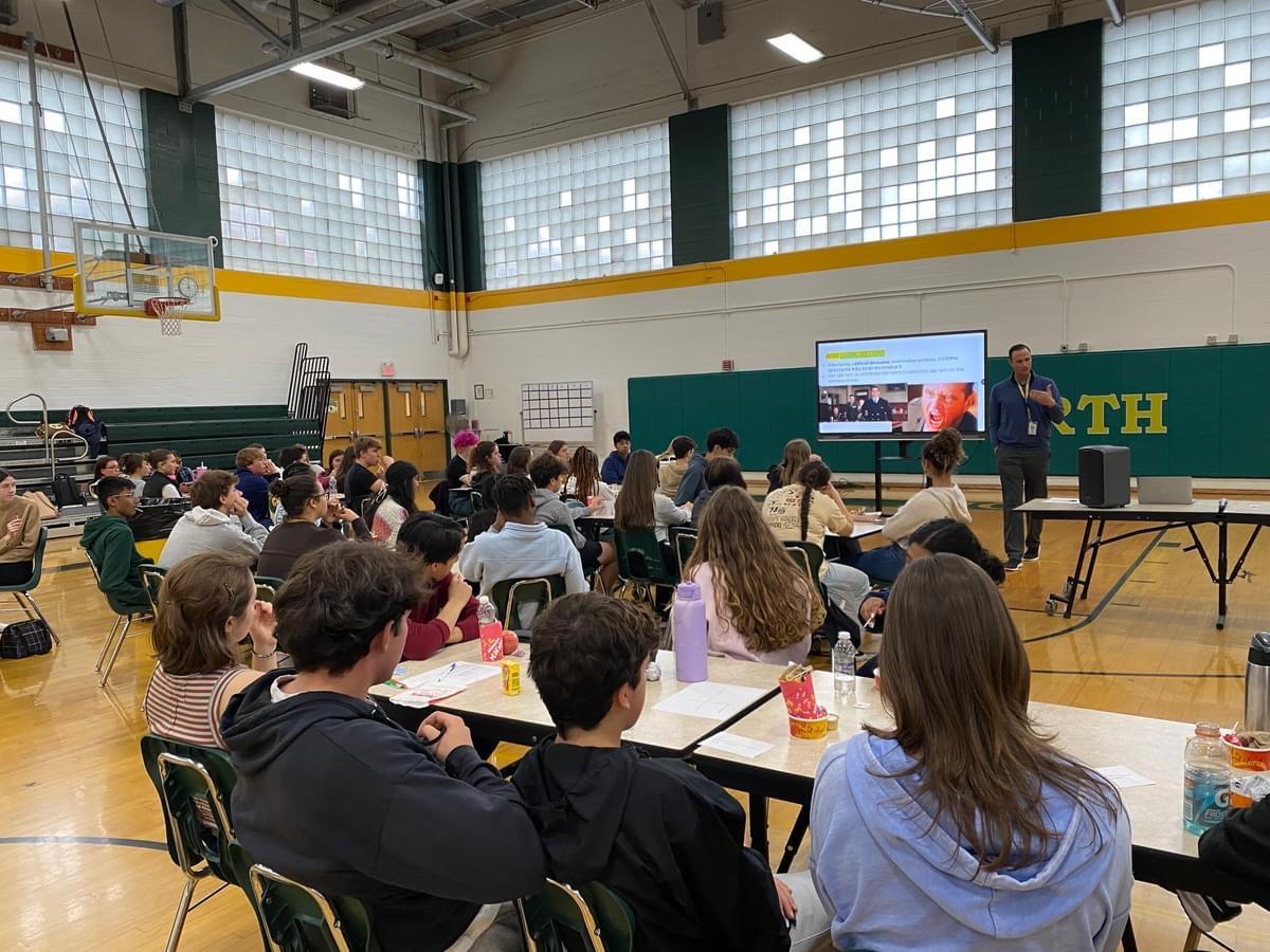 On November 21st, the NHV Leadership Summit united NHHS and VHS students to come together as school leaders. The event was held in the Gold Gym at NHHS. Approximately 60 students gathered to work on communication, empathy, and team building.