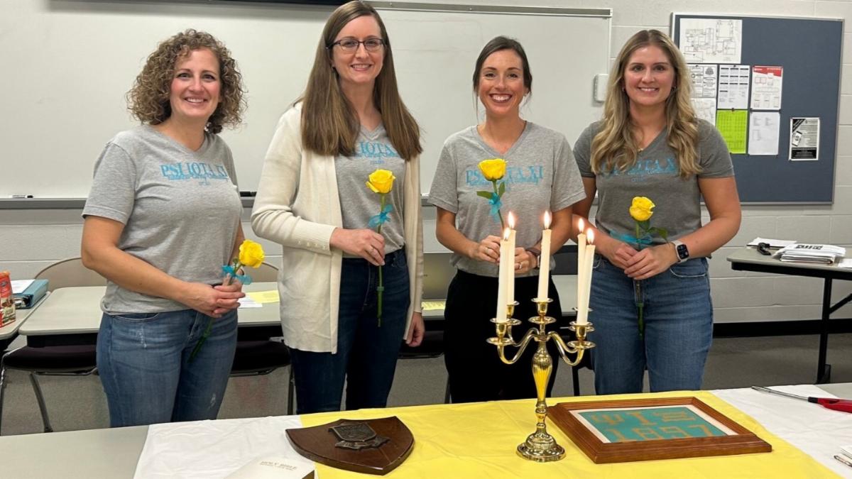 Theta Zeta Chapter, Fort Recovery, OH, initiated four new members in November. Left to right, Amy Bateman, Sarah Stammen, Emily Reinhard & Heather Addington. | |