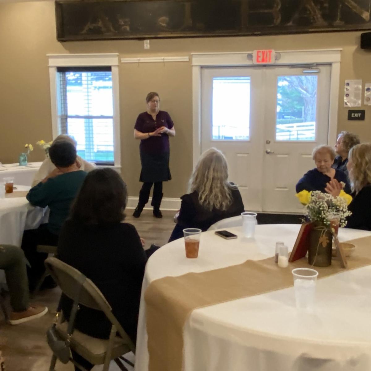 Upsilon chapter member Linda Comstock-Teal provided a guided tour and storytelling of the Riley home. | | |