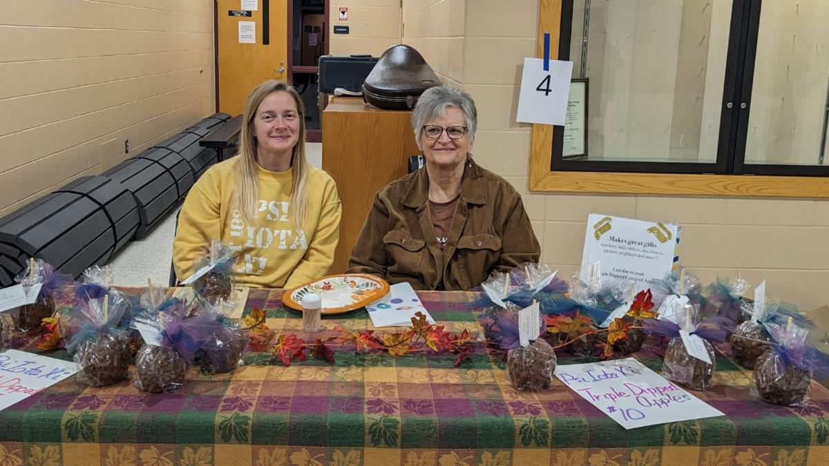 Alpha Rho, Garrett, IN, sold their famous triple dipped apples at the Garrett Bands Craft Bazaar. | |