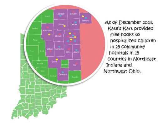 While Kate’s life was very short in terms of years, her struggle and impact has positively touched the lives of thousands of hospitalized children in Northeast Indiana, Northwest Ohio and continues to do so through Kate’s Kart, a non-profit started by her family aimed at providing free books to children while they fight their illness while hospitalized. Looking at books was something Kate enjoyed, and something that continues to honor her memory while helping hospitalized children forget about their own struggles in a good book.