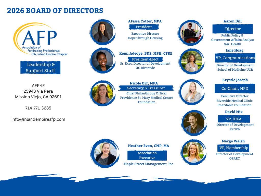 Congratulations to the 2026 AFP Inland Empire Chapter Board of Directors!
