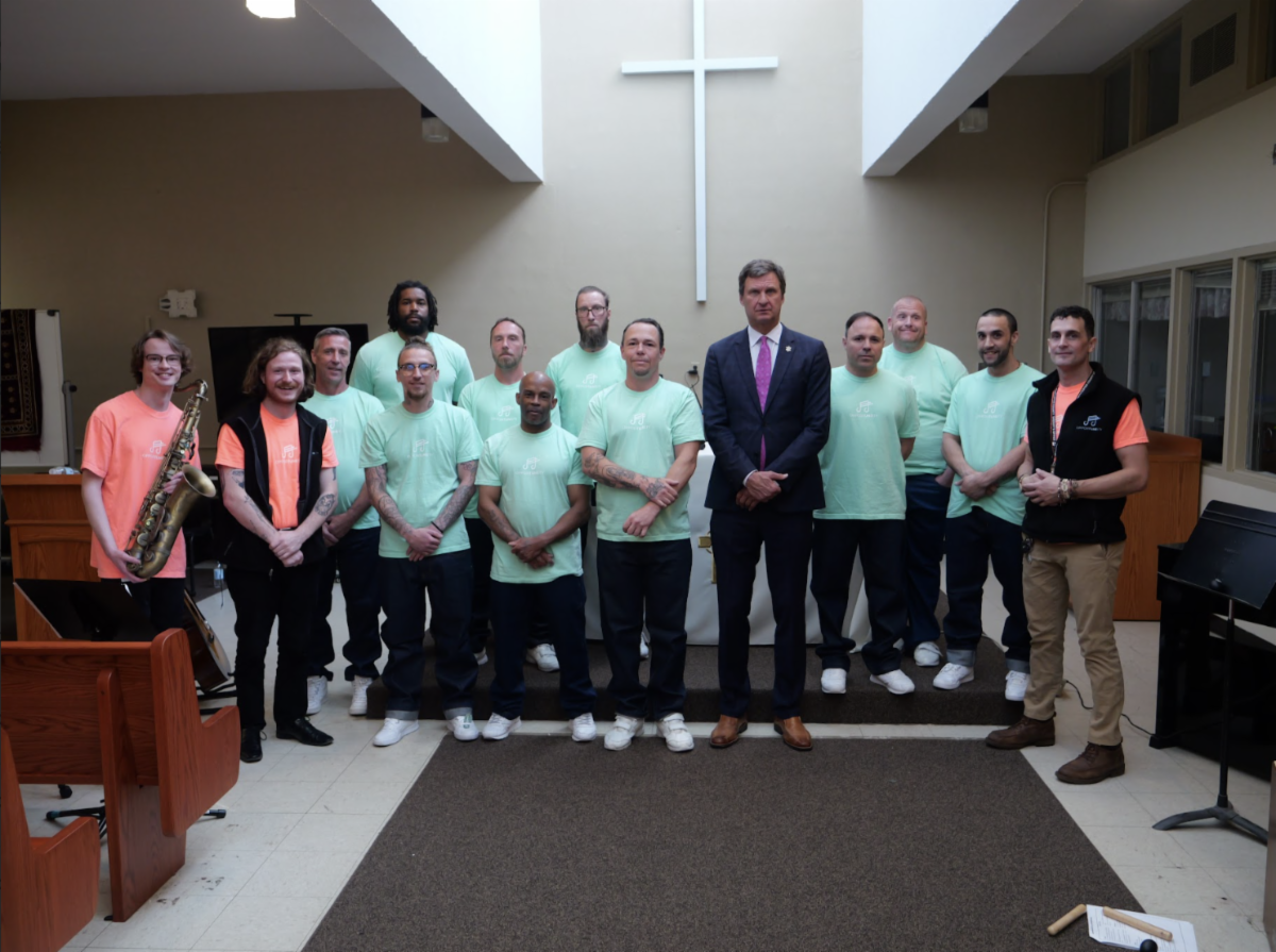 On December 9, we celebrated a semester of hard work and musical growth at the Worcester County Jail and House of Correction (WCHoC). 6 students enrolled in our Songwriting Fundamentals course, taught by Dan DeCristofaro and Harman Kaler, and in popMATICS, taught by Tony Parlapiano, performed for family members and jail staff.