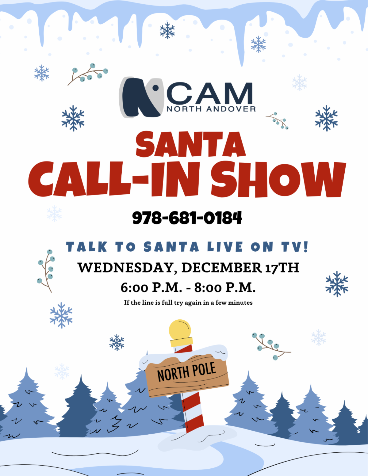 North Andover CAM will be closed on Thursday, December 25th for Christmas.