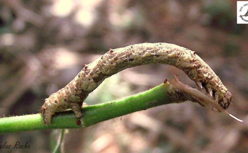 The bougainvillea in my front yard looks really sad right now. The leaves exhibit scalloped, hole-y edges, something has definitely been munching on them. I suspect they are the appetizer, main course, and dessert for a very hungry bougainvillea looper, Disclisioprocta stellata.