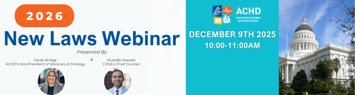 As the calendar year ends, our team wants to take some time to recap a few of the highlights of 2025. First, from a legislative perspective, the Association is very pleased that the Governor signed ACHD sponsored AB 533 (Flora), which re-authorizes any healthcare district to use the design-build process when contracting for the construction of a hospital or health facility building, effective January 1, 2026. ACHD was also instrumental in blocking or mitigating the impact of several bills (through requested amendments) that would have posed challenges for healthcare districts. While this was, by several measures, a successful legislative year, we recognize that significant challenges remain on the horizon.