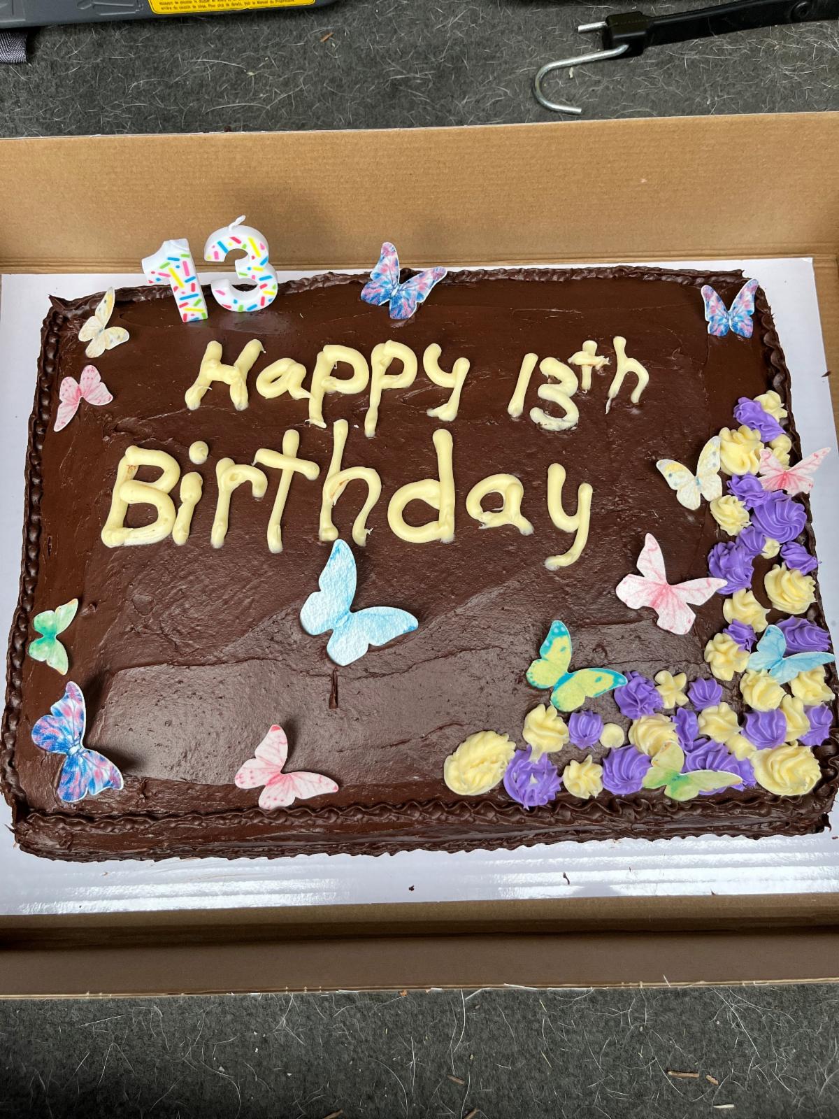 | | Jill Slabey made "this in the wild" cake for a 15-year-old girl and 12-year-old boy to share. The birthday kiddos also received a Wings of Fire- The Dark Secret, tiger skin rug, board games, pickleball set, NERF blasters, Squishmallows, and more. Cindy Liddle made the special delivery. | | Galaxy cake by Chris Wells. | | Butterfly sheet cake by Cherie Katana. | | Sprinkled with Love cupcakes by Cherrie Smith. | | Hello Kitty cake by Cathy Footer. | | Paw Patrol cake by Jamie Kang. | | Unicorn cake by Lauren Yasuda. | | |