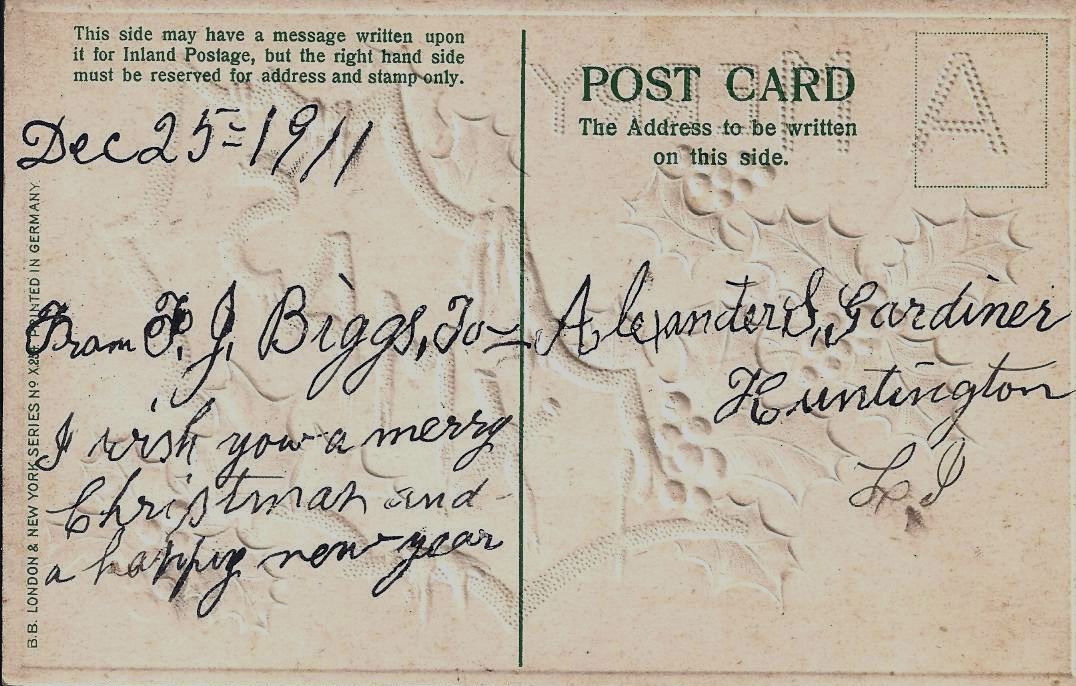 Christmas Card to Alexander Gardiner from Biggs