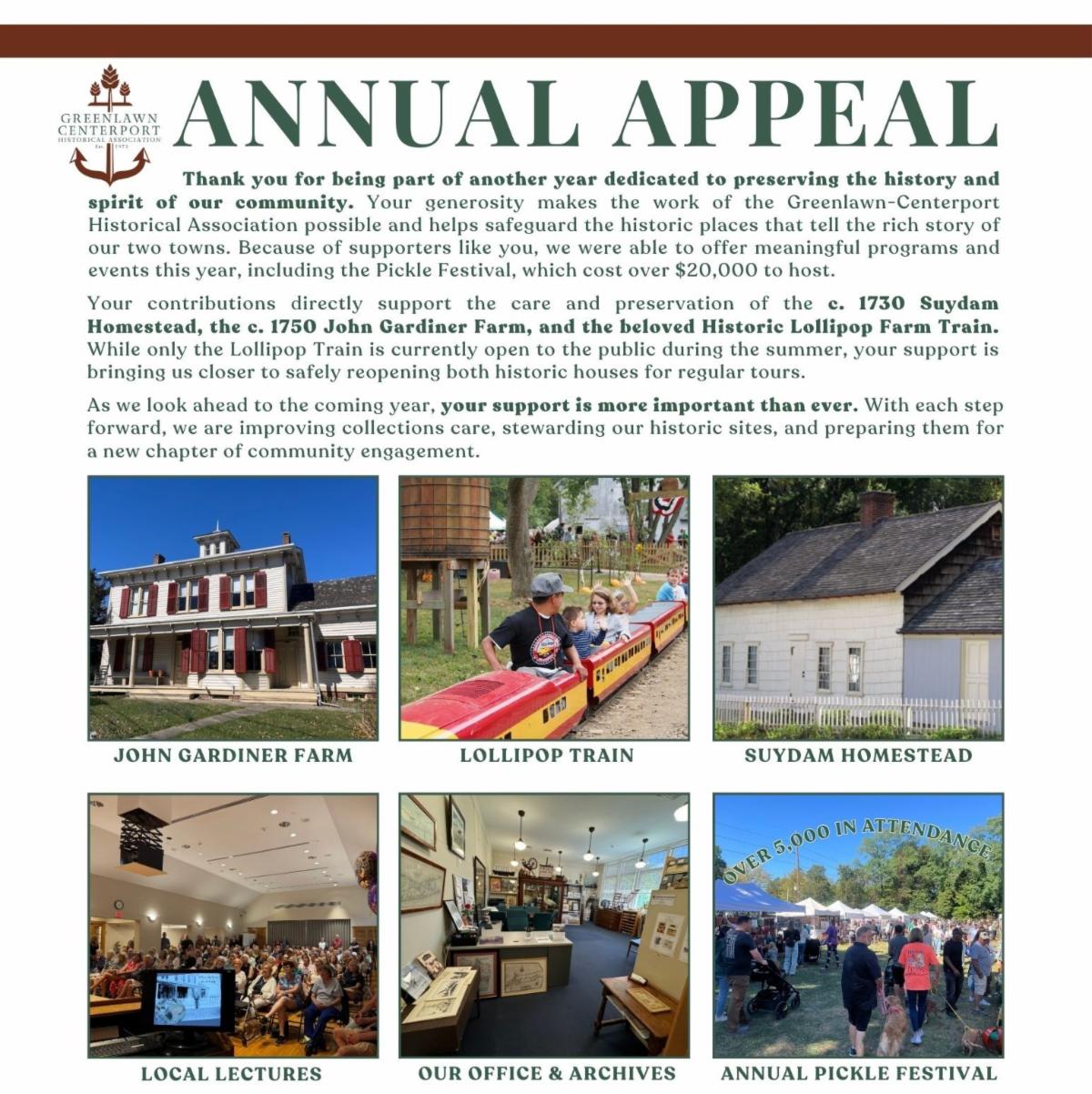 Consider renewing your membership or joining! Your annual dues allows us to continue maintaining our two historic properties, the John Gardiner Farmhouse, and the Suydam Homestead, alongside the preservation of paintings, photographs, documents, and ephemera at the Russell B. Brush Research Center.