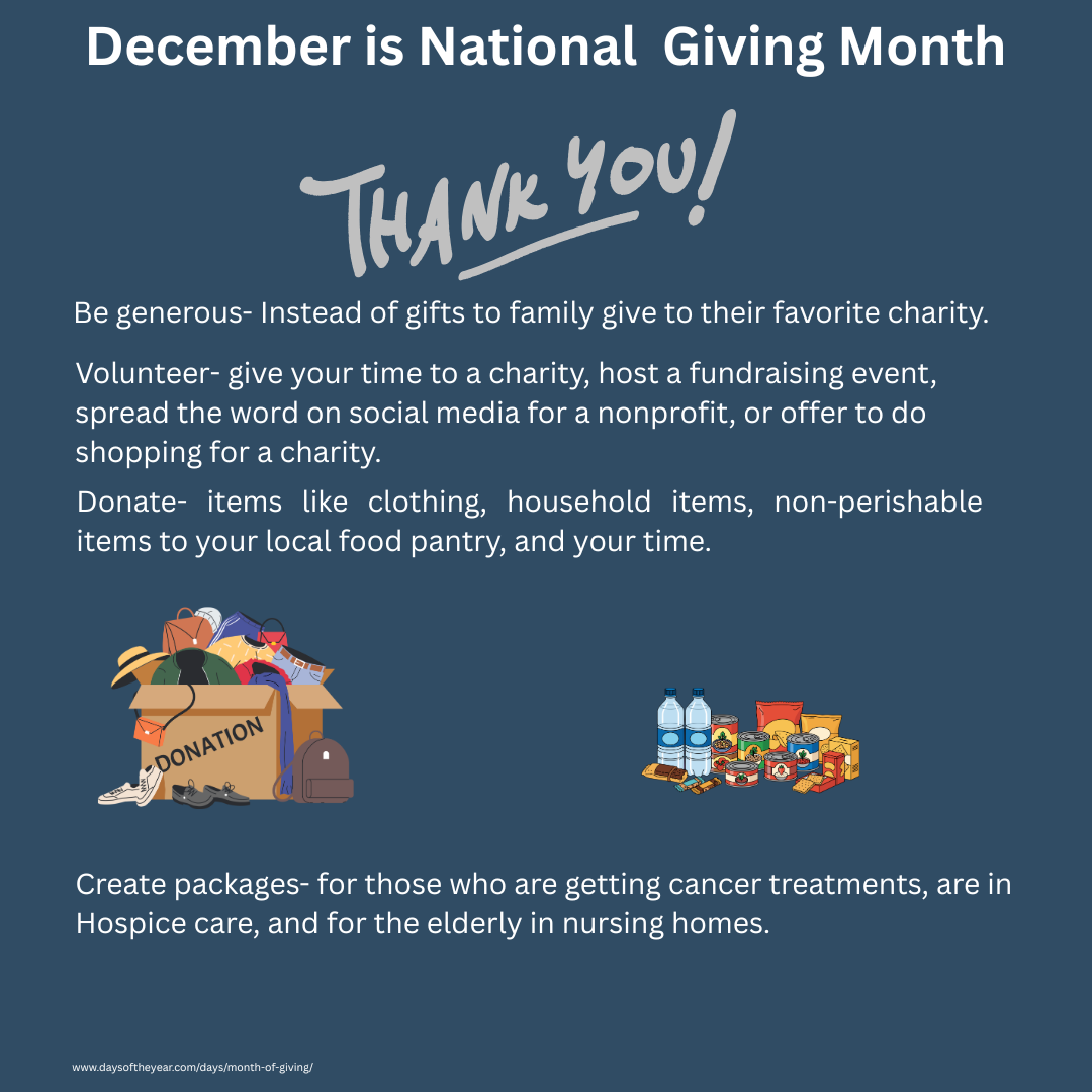 As we approach the holiday season, we’re reminded that this time of year can look different for everyone we serve both physically and emotionally. For some it brings joy, traditions, and family gatherings. For others it can bring mixed emotions when dealing with illness, loss of family or friends, or stress of being full time caregivers.