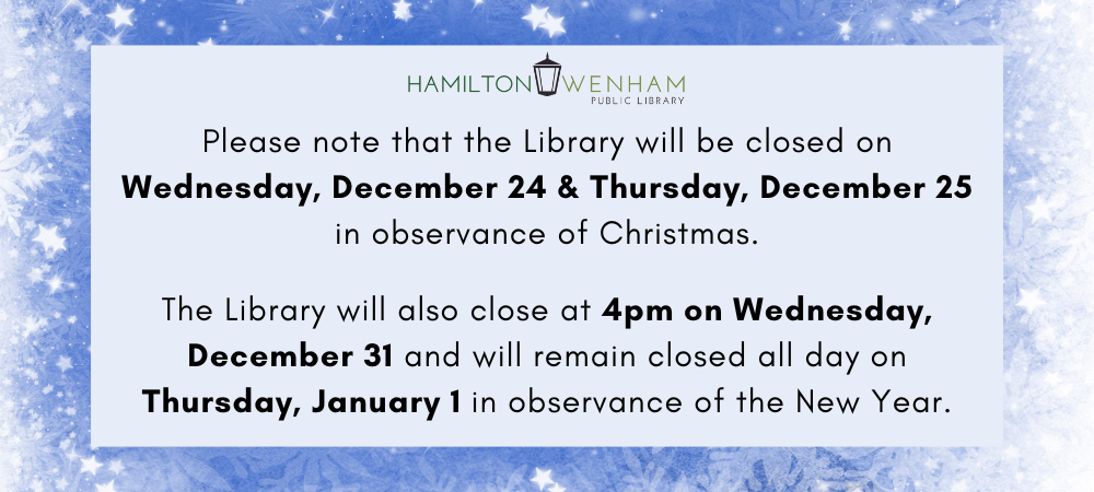 Book clubs meet at the Library and are open to all. Copies of each book are available to check out at the Library while supplies last.