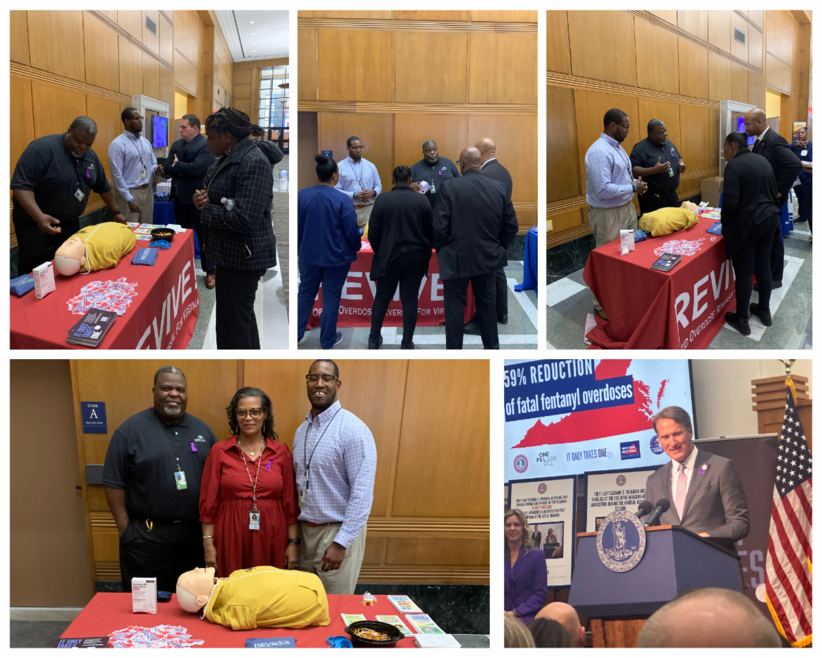 11/13: Henrico Prevention partnered with VA DBHDS on Nov 13th, to deliver REVIVE overdose-response training at the Governor’s Office during a ceremony highlighting statewide progress, including a reported 57% drop in opioid overdoses and the One Pill Can Kill and It Only Takes One campaigns.