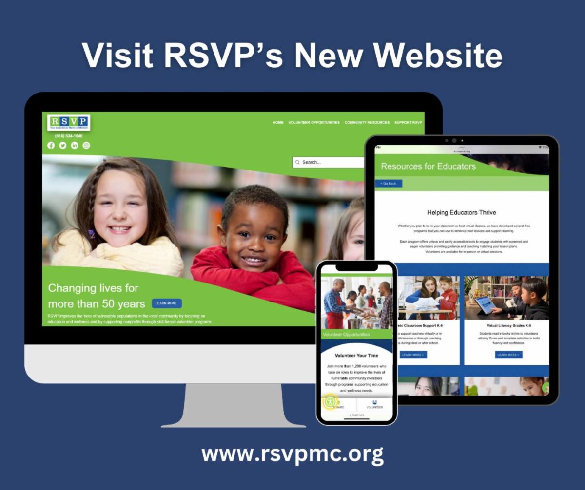RSVP Volunteers launched its new website on November 16, 2023. The website is a fresh, user-friendly source for community members to find information about volunteering, free public programs, and more. The new website provides easy navigation for various audiences that RSVP Volunteers serves. An accessibility badge helps visitors use the website with features like contrast settings, a screen reader, a text magnifier, and more. Check out this new site, and connect with RSVP for volunteer opportunities throughout the region!