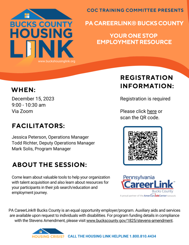 January 24, 2024, 9 - 10:30 am, Bucks County Intermediate Unit #22, Doylestown, PA