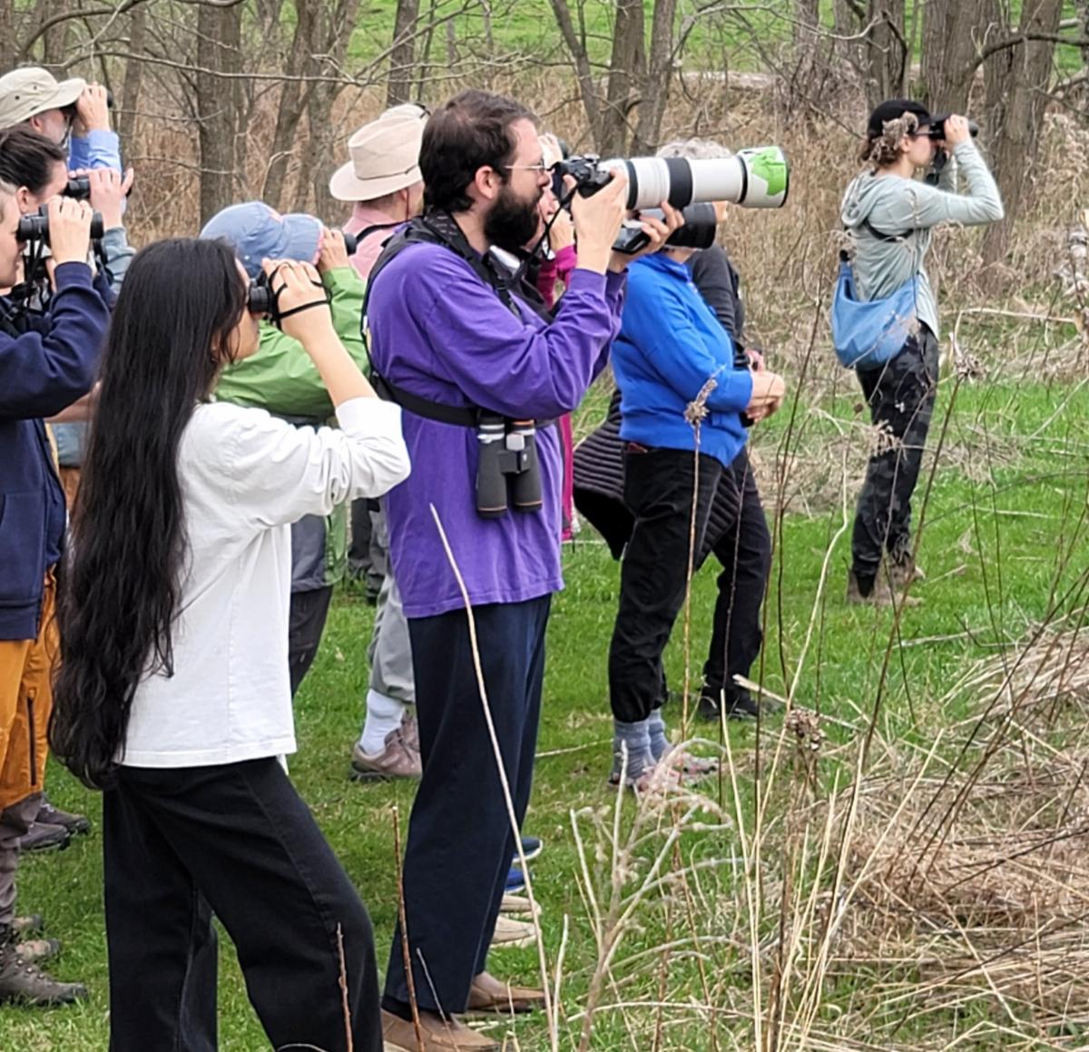 On a gray April morning, Joe Gyekis led a group of 40 birders along ChicoryLane paths for the first Bird Walk of the year. Visitors identified 158 birds of 43 different species, both visually and by calls. The day's inventory can be viewed here.