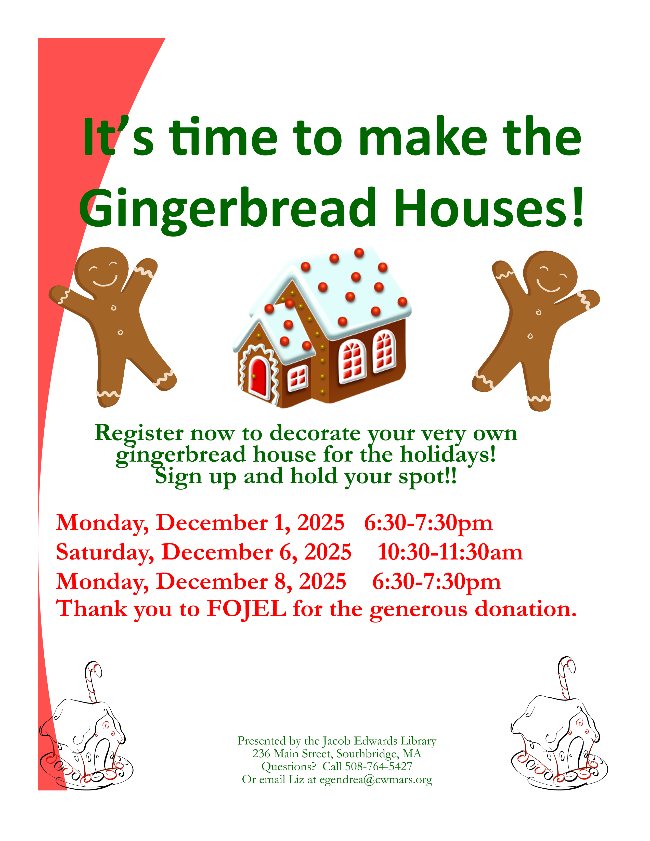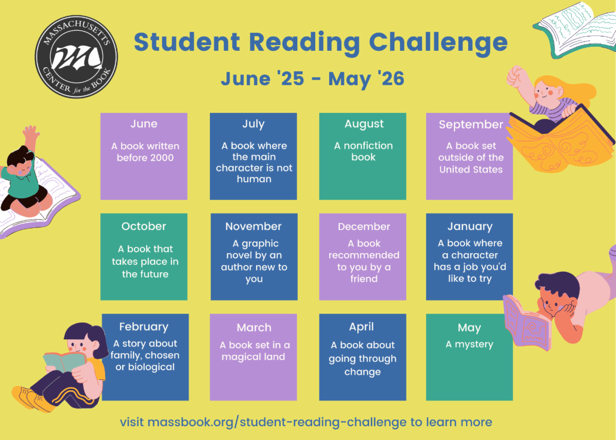 The Jacob Edwards Library is thrilled to be partnering with Mass Center for the Book to promote their 2025 Reading Challenge. Pick up cards and bookmarks at the Circulation Desk and participate by following the steps below.