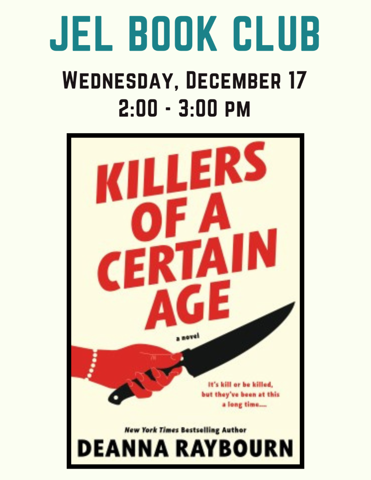 In December, the group will discuss Killers of a Certain Age by Deanna Raybourn. Books are available at the Circulation Desk for checkout.