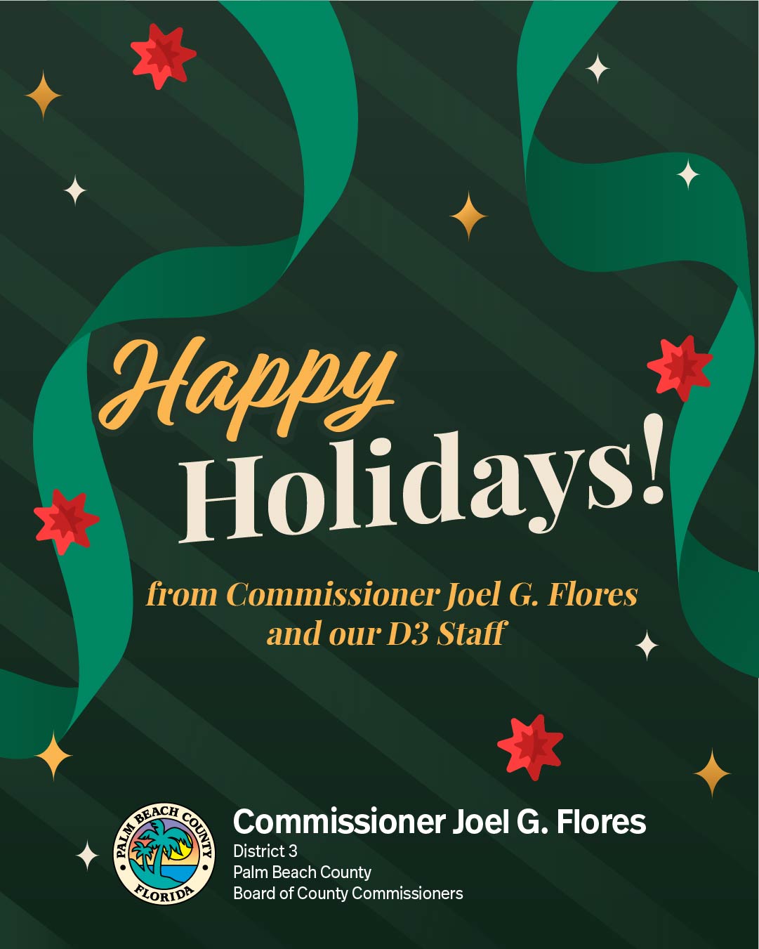 | | During this time of year, partnerships make magic happen. The E-Care Ambulance team and my staff visited the Guatemalan Maya Center today to help with their toy drive. E-Care donated dozens of toys to this effort that is helping over 2,000 children in our community. Thank you to everyone involved for caring so deeply about the families in District 3. | | Greenacres Celebrates 100 Years! | | Happy 100 years to the wonderful City of Greenacres from your Palm Beach County Commissioner and former Greenacres Mayor. The centennial kickoff event this weekend brought together the entire community for fun activities and culminated with an impressive drone show. Here’s to another amazing 100 years! | | Greenacres Fire Rescue Breakfast with Santa | | The Breakfast with Santa event in Greenacres was a big success! Families filled Greenacres Fire Rescue Station 94 to enjoy a pancake breakfast made by the firefighters and capture special moments with Santa. Already looking forward to next year! | | Delray Beach Chanukah Festival | | Team Flores enjoyed an evening of music, community spirit, and the lighting of the menorah at the Delray Beach Chanukah Festival & Menorah Lighting. The event brought together families and neighbors to celebrate faith, tradition, and togetherness during the holiday season. It was a meaningful reminder of the importance of unity, cultural celebration, and standing together as one community. | | Government in Action Day at Greenacres Elementary | | |