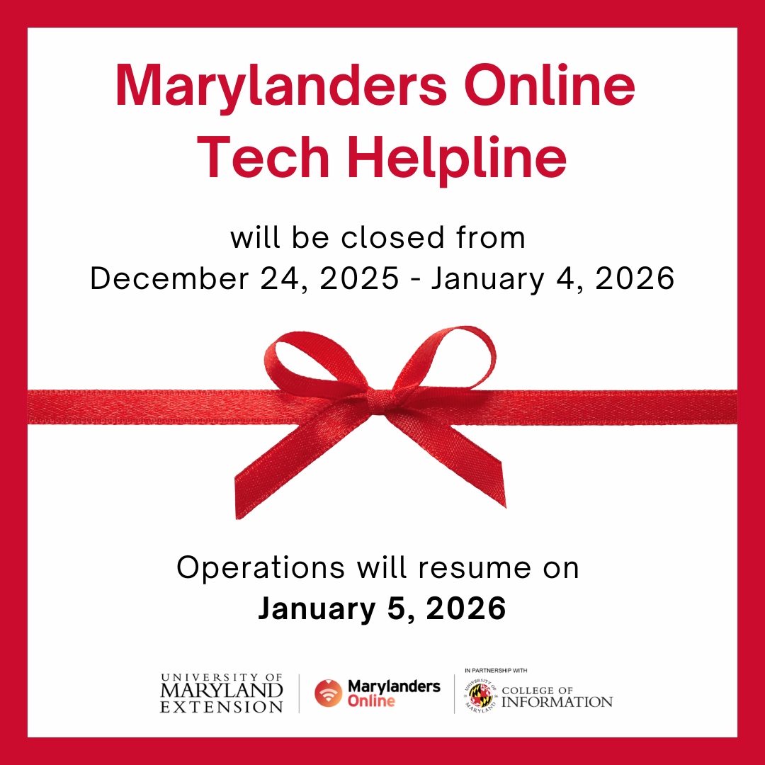 The Marylanders Online Tech Helpline will remain open in 2026, with adjusted hours to be announced in January