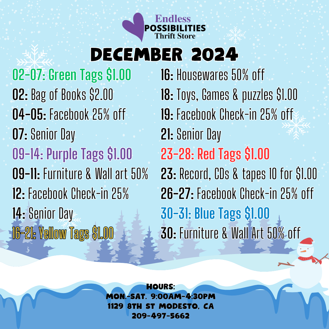 Starting to shop for Christmas? Be sure to stop by our Thrift Store at 1129 8th Street… Manager Alex Bohnet has lots of great bargains just waiting for you!