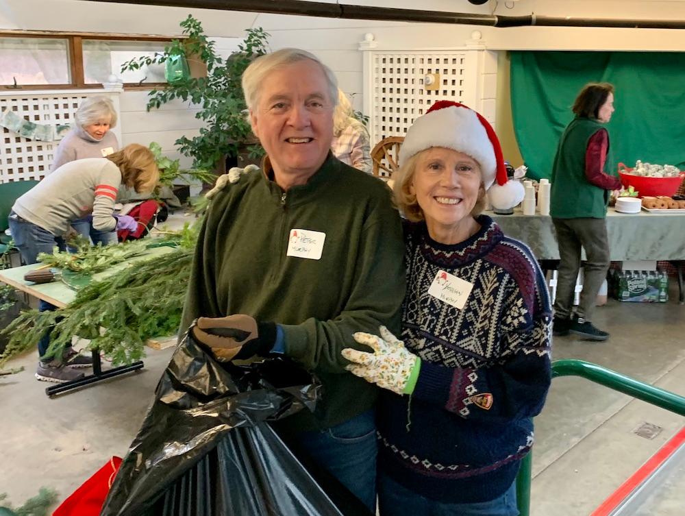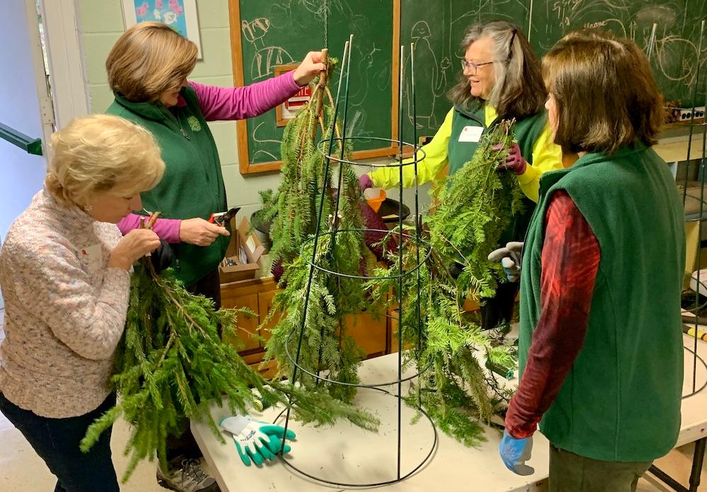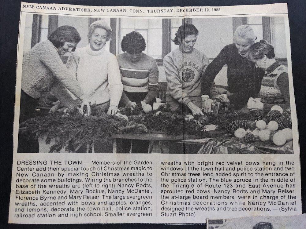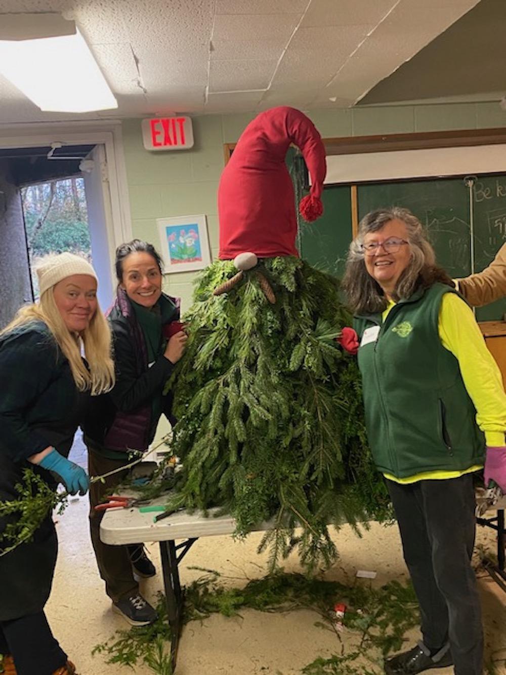 The New Canaan Garden Club and NCBL joined forces once again to make wreaths and gnomes to decorate our town. Many thanks to the Murphys and the O'Sheas for their organization; the Nature Center for the use of the green house on a damp day; the town for delivering greens, putting up the wreaths and delivering the gnomes; the hospitality committee for the delicious coffee and donuts and the many members of both groups for their time and talent.