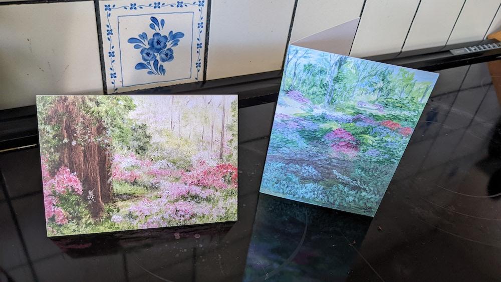 Debbie Gagliardi painted the picture on the left. Her mother, Ann Gillerlain, was in charge of the garden for many years and helped transition it from George Lee's property to NCBL's in 1978.