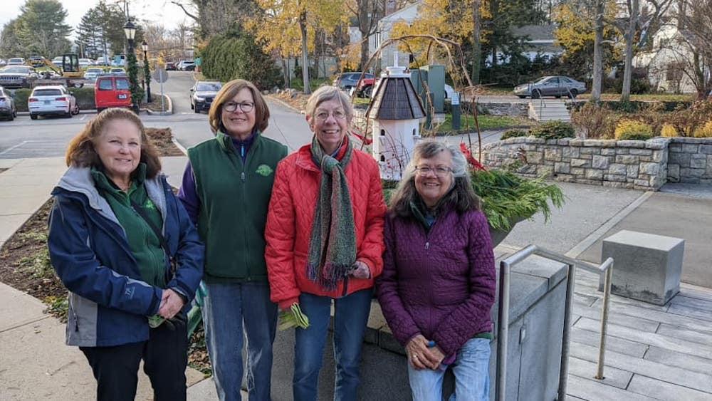 The talented crew of Kathy Kwiatkowski, Yvonne Hunkeler, Kathy Lapolla, and Faith Kerchoff planted the Town Hall planters. This year, the planters are adorned with a bird house and birds!