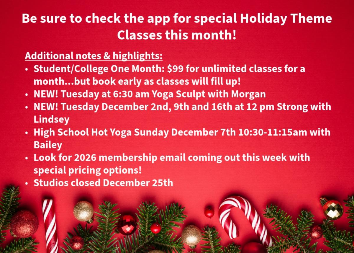 Thank you for filling our studios with energy, kindness, and community all year long. Let’s finish 2025 strong with full hearts, festive spirit, and plenty of fun ahead. It's time for us to celebrate YOU!
