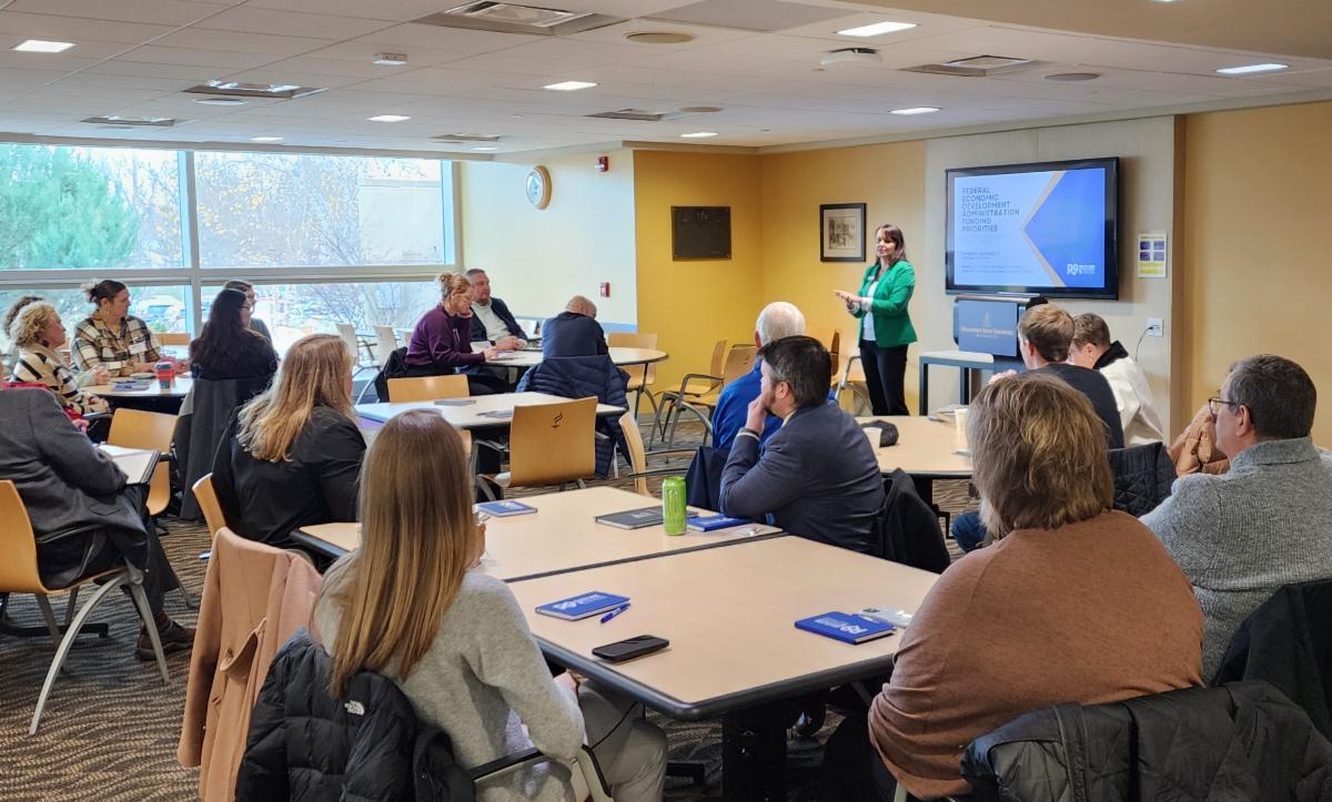 RNDC recently hosted a session with Darrin Fleener, a Federal Economic Development Administration (EDA) representative, at Minnesota State University, Mankato. This event gathered community development professionals, government officials, and higher education leaders to learn more about the funding opportunities available.