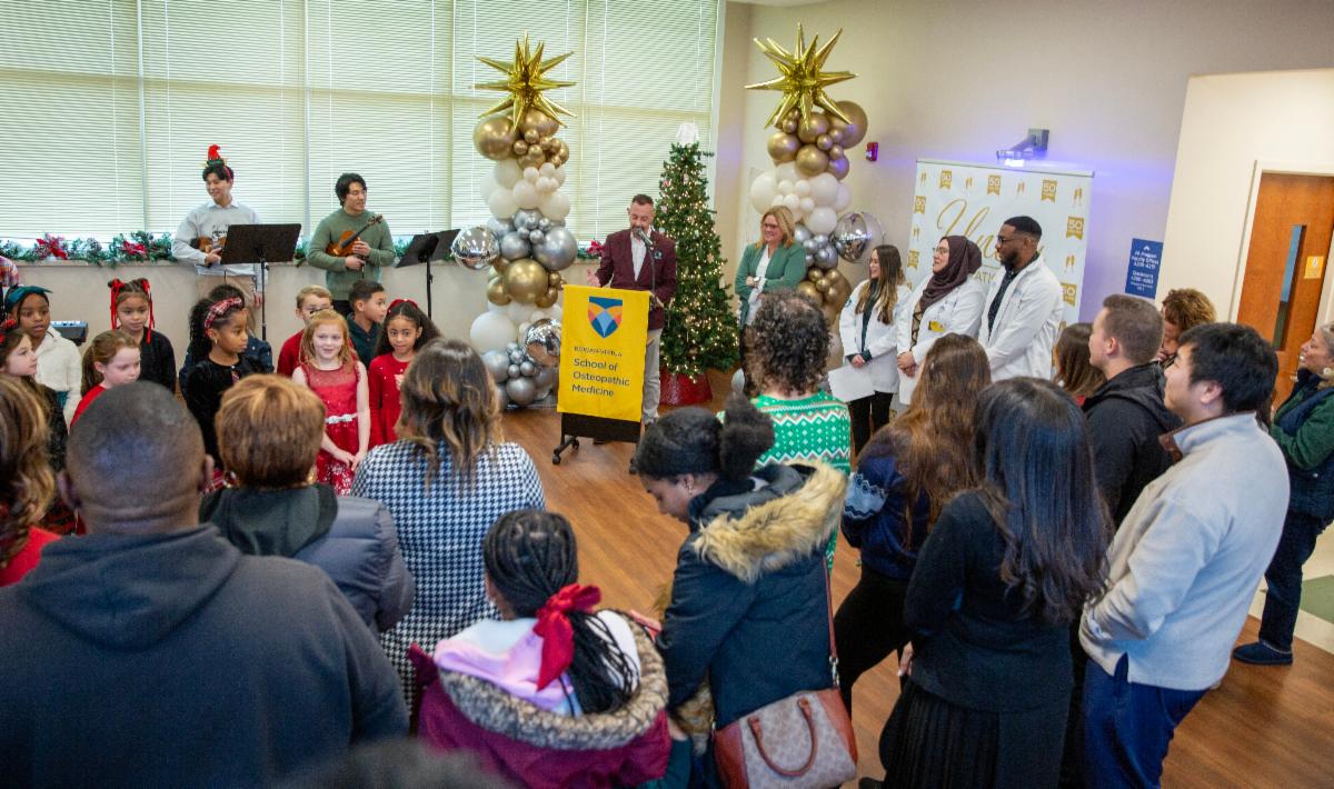 Students, teachers and families from local elementary schools participated in both celebrations, sharing holiday songs and receiving gifts generously donated by the SOM Class of 2028. The festivities concluded with a celebratory luncheon at each campus.
