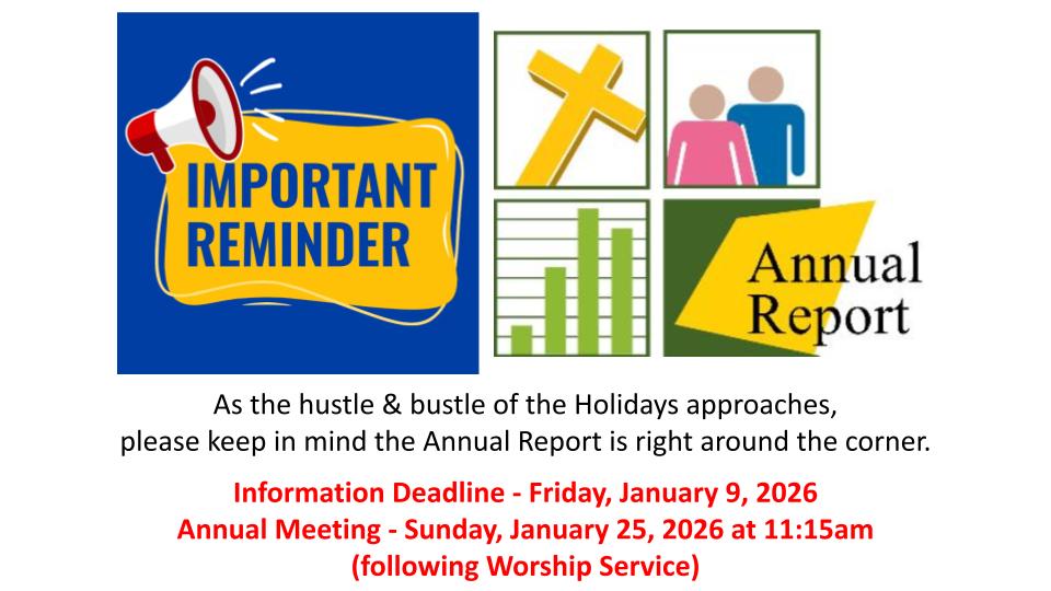 The UCC Church Building & Loan Fund, the capital campaign consultant engaged by Trinity, will conduct a feasibility study in February in preparation for the 2026 capital campaign. Some members of the congregation will be interviewed as part of the study.